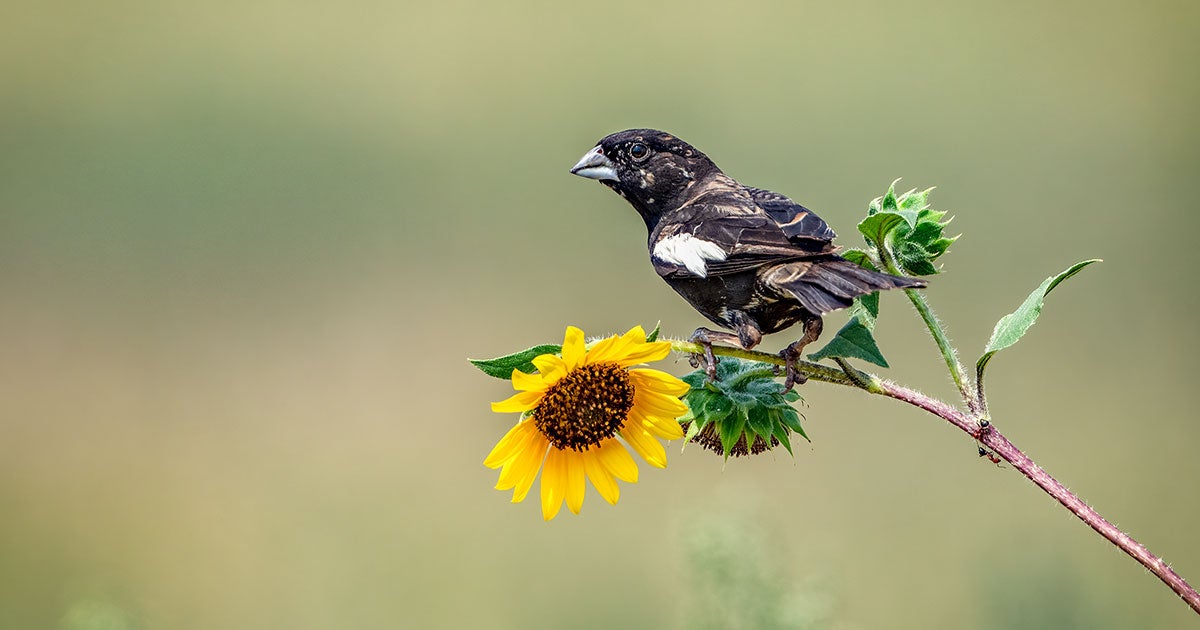 On the western plains in early summer the male Lark Bunting is impossible to overlook, as it flutters up from the grass to deliver its varied flight song. In winter, when males and female alike are patterned in streaky brown, the species is more subtle. Winter flocks of Lark Buntings occur in dry open fields, where they suggest chunky, big-billed sparrows. When they fly, however, in compact flocks sweeping low over the ground, some of them will flash patches of white or buff in the wings.