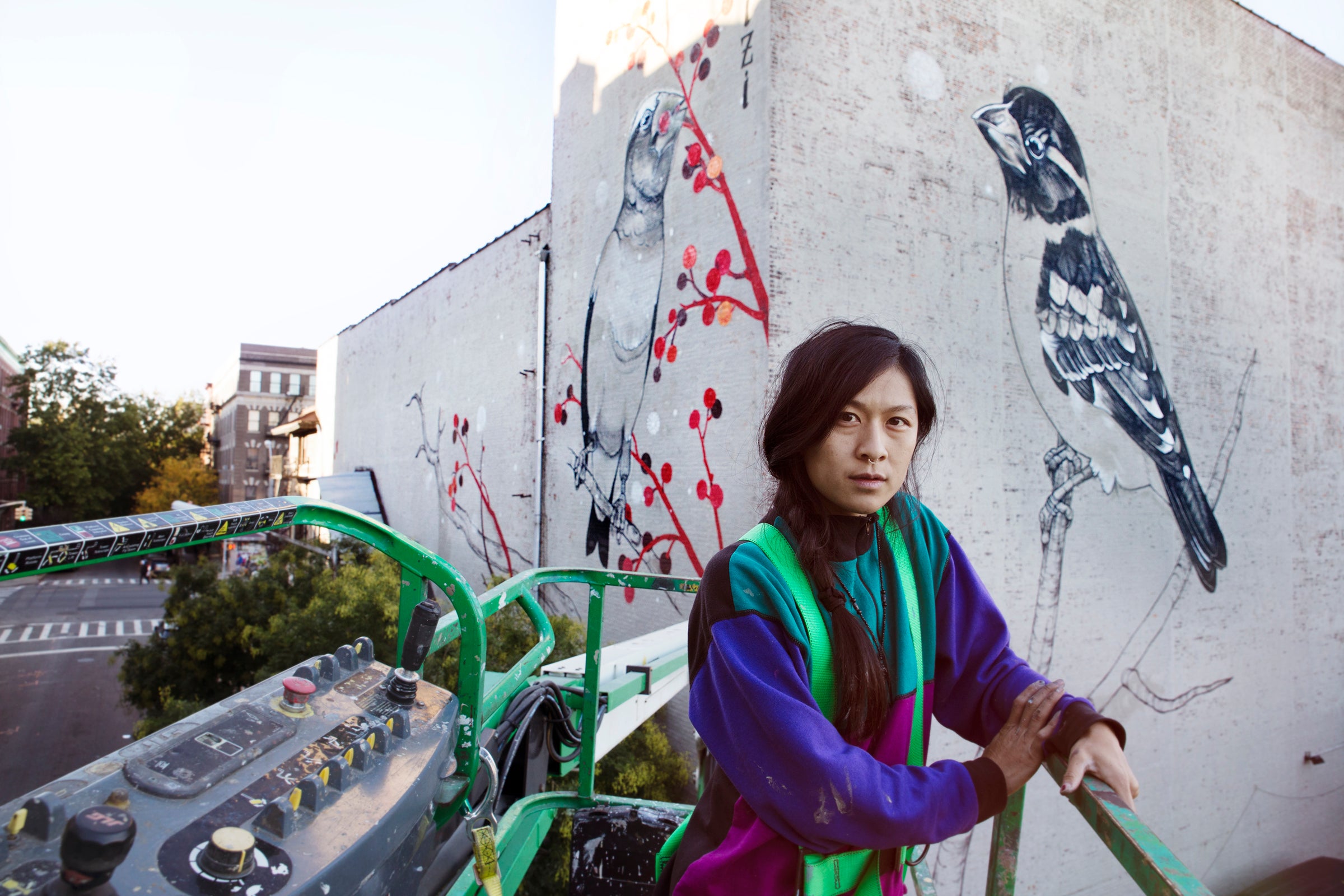 About the Artist: Louise Jones, also known as , is a painter based in Detroit. She makes large-scale installations on buildings that work seamlessly with the existing architecture and paints subject matter from the ornamental and natural realms. Ouizi picked these species because of their beautiful large beaks but also because of the regions where they reside: I live in Detroit, but am originally from Los Angeles, so I chose two birds to represent these two opposite spectrums of the country.